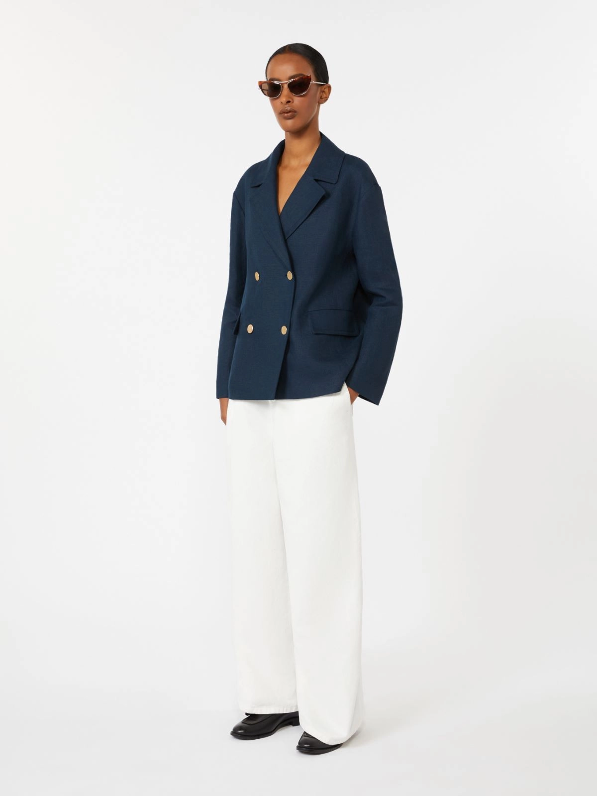 Double-breasted linen jacket - Midnightblue